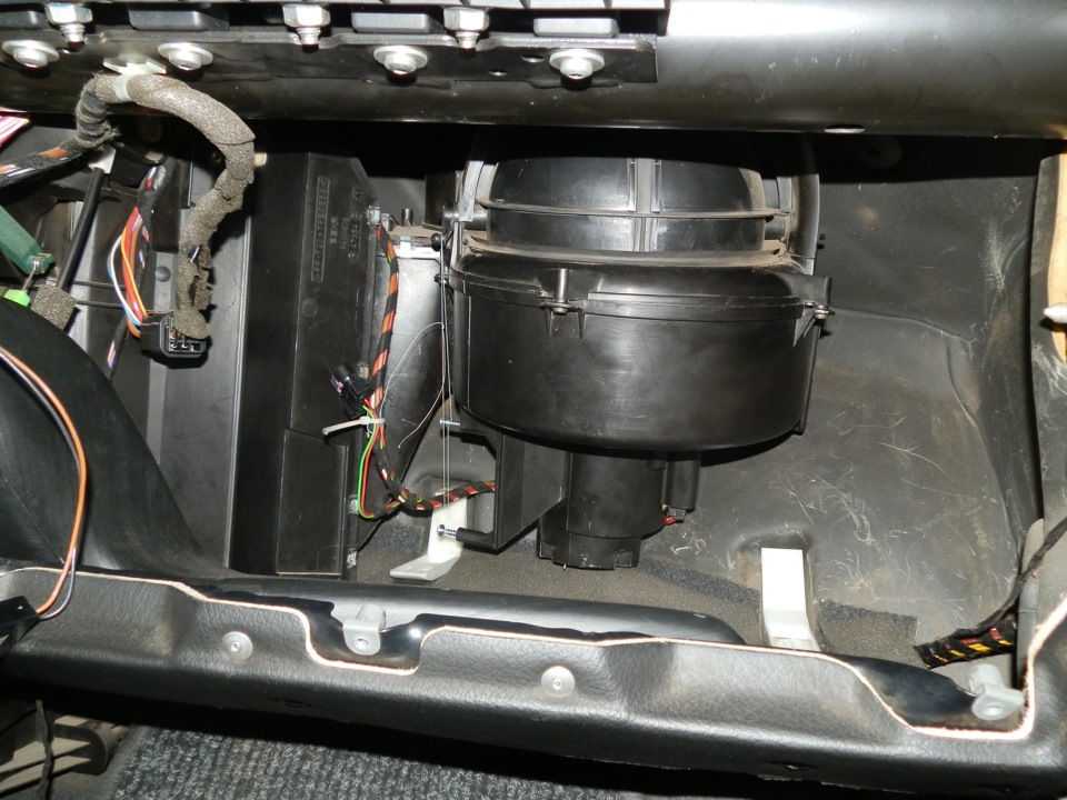 41. Снимите центральную секцию передней панели салона. Подайте на себя воздухораспределительную коробку в нише для ног и снимите (смотрите фотографию). Для снятия коробки на моделях Zafira отверните болты и снимите кронштейны.