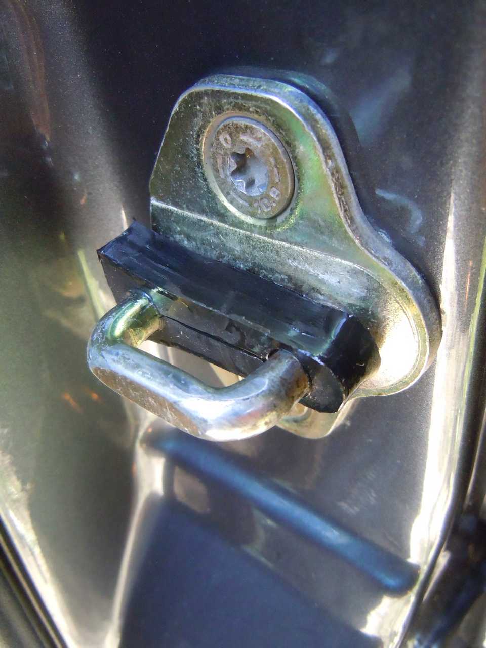 Что по и тогу имеем, перед закрыванием двери отрегулировать петлю, чтобы резинка точно попадала по центру проема корпуса двери для замка, т.е. в эту резинку будет упираться металлический корпус замка, который наглухо прикручен к корпусу двери, по итогу получиться жесткие три точки крепления, две это на шплинтах петель и 3-я на замке.Я заказывал сразу 4 шт., хотя можно и две, на задние двери не ставил, там и так все тихо, установил только на передние и теперь меня посторонние звуки от замка ашпэ не беспокоят, при этом дверь закрывается почти так же как и до установки без особого усилия.