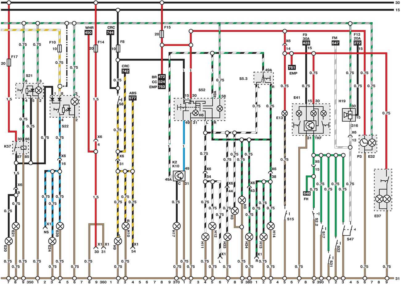 Поэтому отрицательный полюс аккумулятора (-) также проводом соединен с кузовом. Иногда такого присоединения к «массе» (-) не хватает, и тот или иной потребитель электроэнергии имеет отдельный провод, соединяющий его с кузовом автомобиля. Такие провода, как правило, имеют коричневую изоляцию. В отдельных цепях могут быть объединены выключатели, реле, предохранители, измерительные приборы, электродвигатели и другие электрические узлы и детали. Чтобы их можно было правильно подключить, каждый контакт имеет соответствующее обозначение.