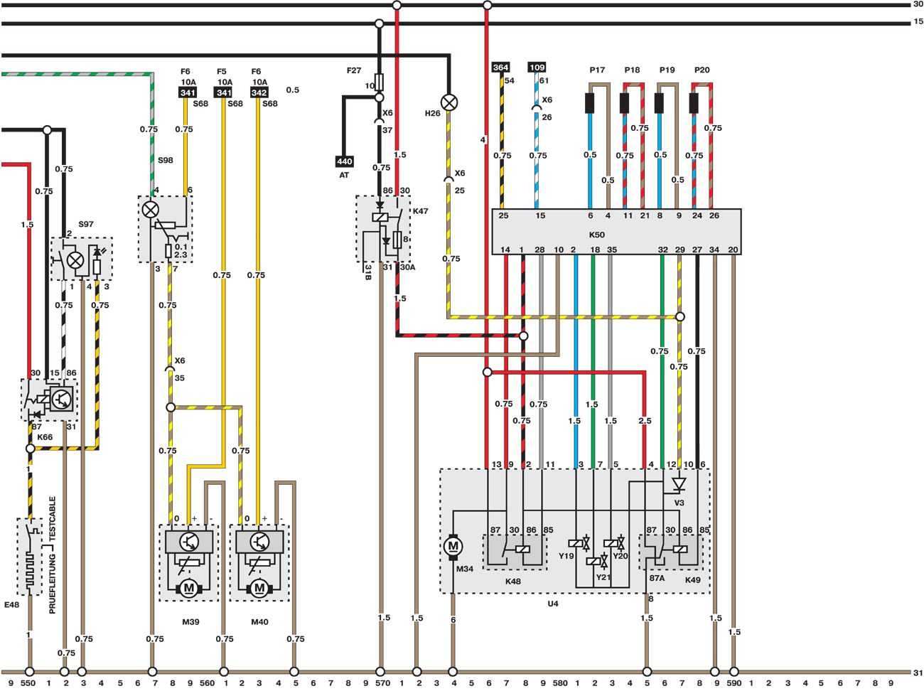 - Клемма 30. Эта клемма постоянно находится под напряжением от аккумулятора. Изоляция провода обычно красная или красная с цветными полосками.