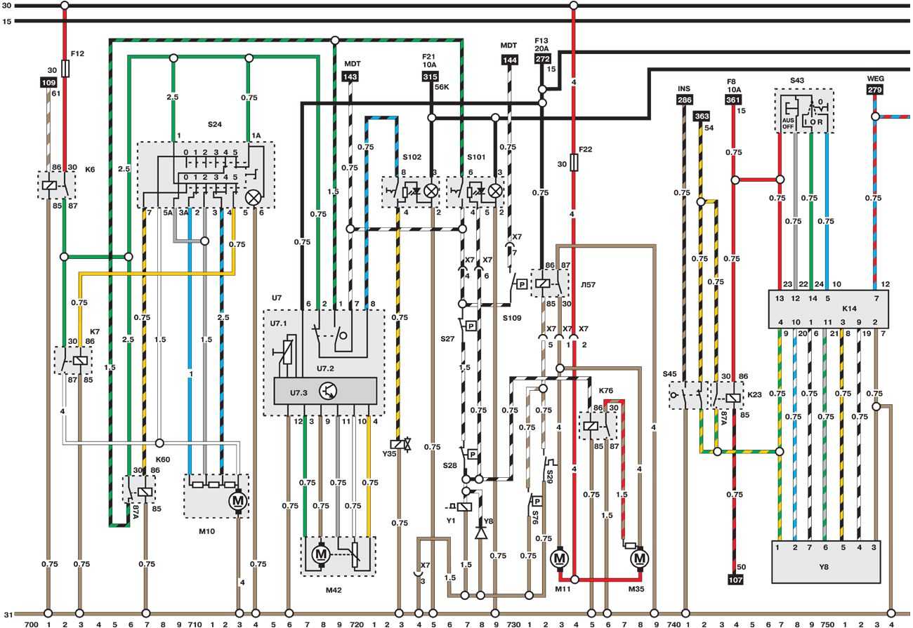 Схемы электрооборудования автомобилей Опель Омега Б (Opel Omega B)